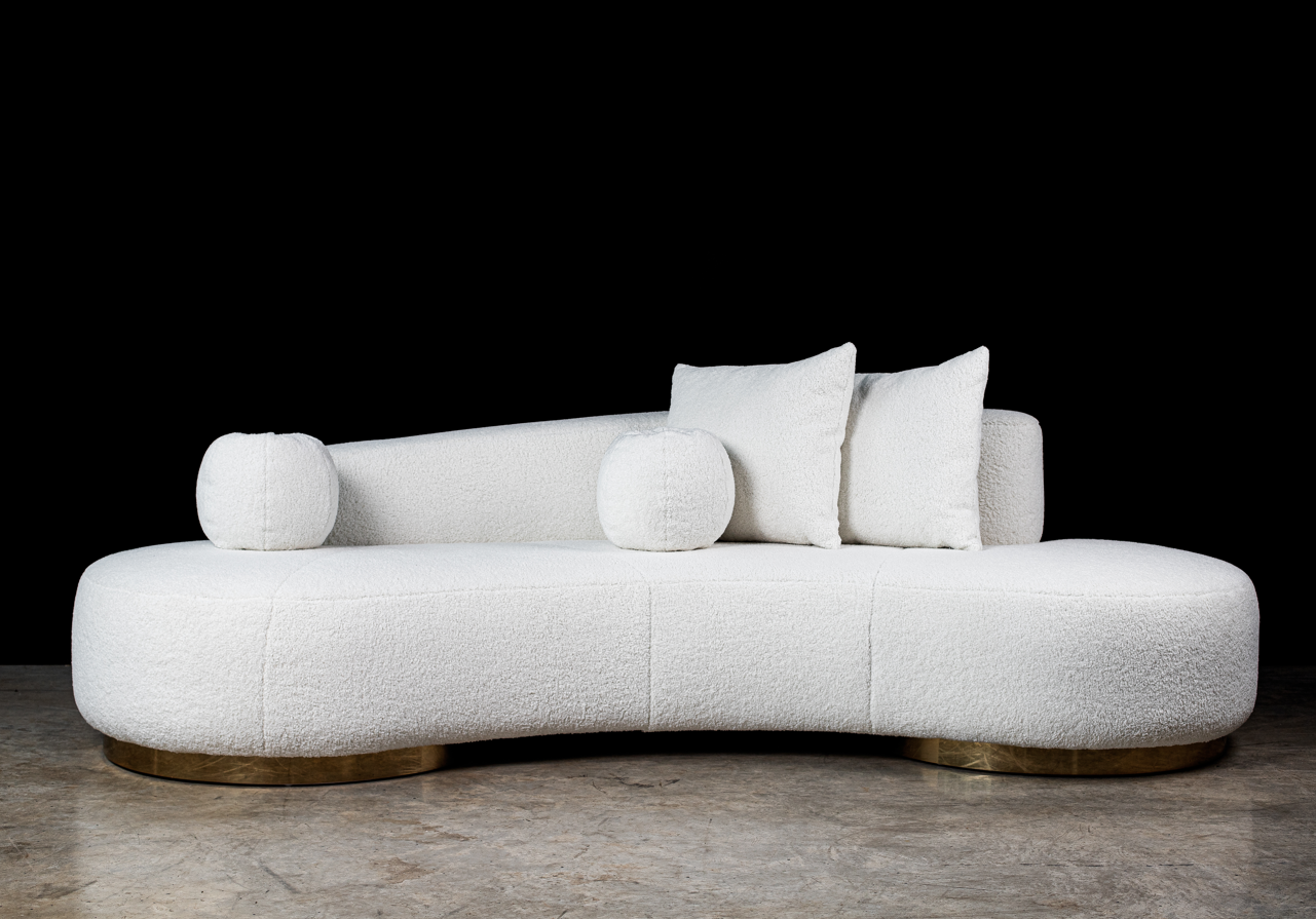 Já o sofá Aruba, lançado em junho de 2022, traz o design inconfundível de Sérgio Bolis, da Bolis Design, com uma curvatura acentuada, quebrando a sobriedade de um ambiente refinado. Irreverente e criativa, a peça abusa do charme e se destaca em meio a um espaço cercado de linhas retas e regulares. A estrutura dourada na base dá o toque final para um móvel que reúne conforto, classe e irreverência.