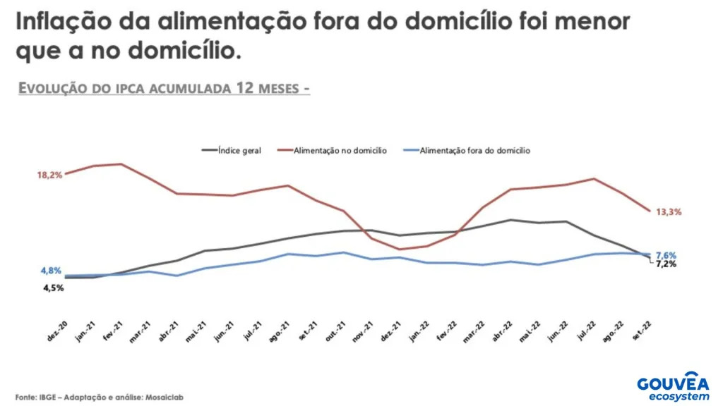E como se observa, superado o período mais dramático da inflação para o setor de alimentação, no lar e fora do lar, existe uma tendência declinante com perspectiva de continuidade de sua redução no Brasil.