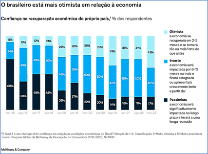 O otimismo por aqui aumentou 12 pontos e atingiu o maior índice já capturado pelo levantamento, que é realizado pela McKinsey desde 2016.