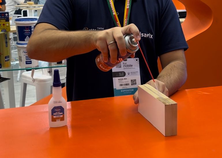 A Kisafix também levou novidades para o evento, entre elas o Kit MDF desenvolvido especialmente para marcenarias. Com ele é possível colar peças de MDF topo com topo, garantindo mais resistência e durabilidade para os móveis. Sem contar com a praticidade de colagem que esse kit promete.