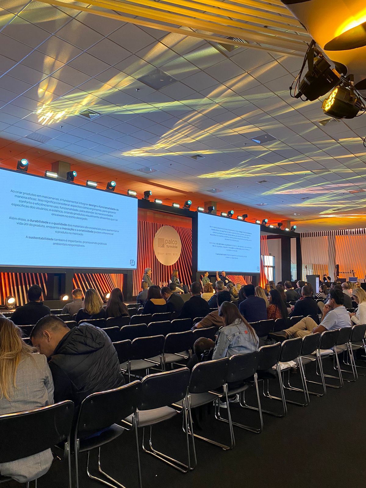 No primeiro dia de evento, foram mais de seis horas de conteúdos apresentados no palco da feira, começando pelo Podcast Fala Aí Marceneiro, ministrado pela marceneira Anne Oelke e pelo mentor de marcenarias Valci Goulart. Em seguida, foi a vez da arquiteta Roberta Grau falar sobre como otimizar ambientes em projetos e, depois dela, Anderson Rios falou sobre a Inteligência Artificial no setor moveleiro.