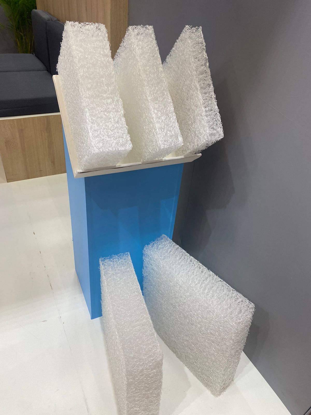 Outro destaque foi a manta de polietileno da C.Core Brasil, desenvolvida para substituir a espuma, ela é 100% lavável, sendo uma excelente opção para móveis externos. Além disso, esse material não se deforma, é antialérgico, antitérmico e anti sufocamento, podendo ser utilizado em colchões para bebês e colchões hospitalares.