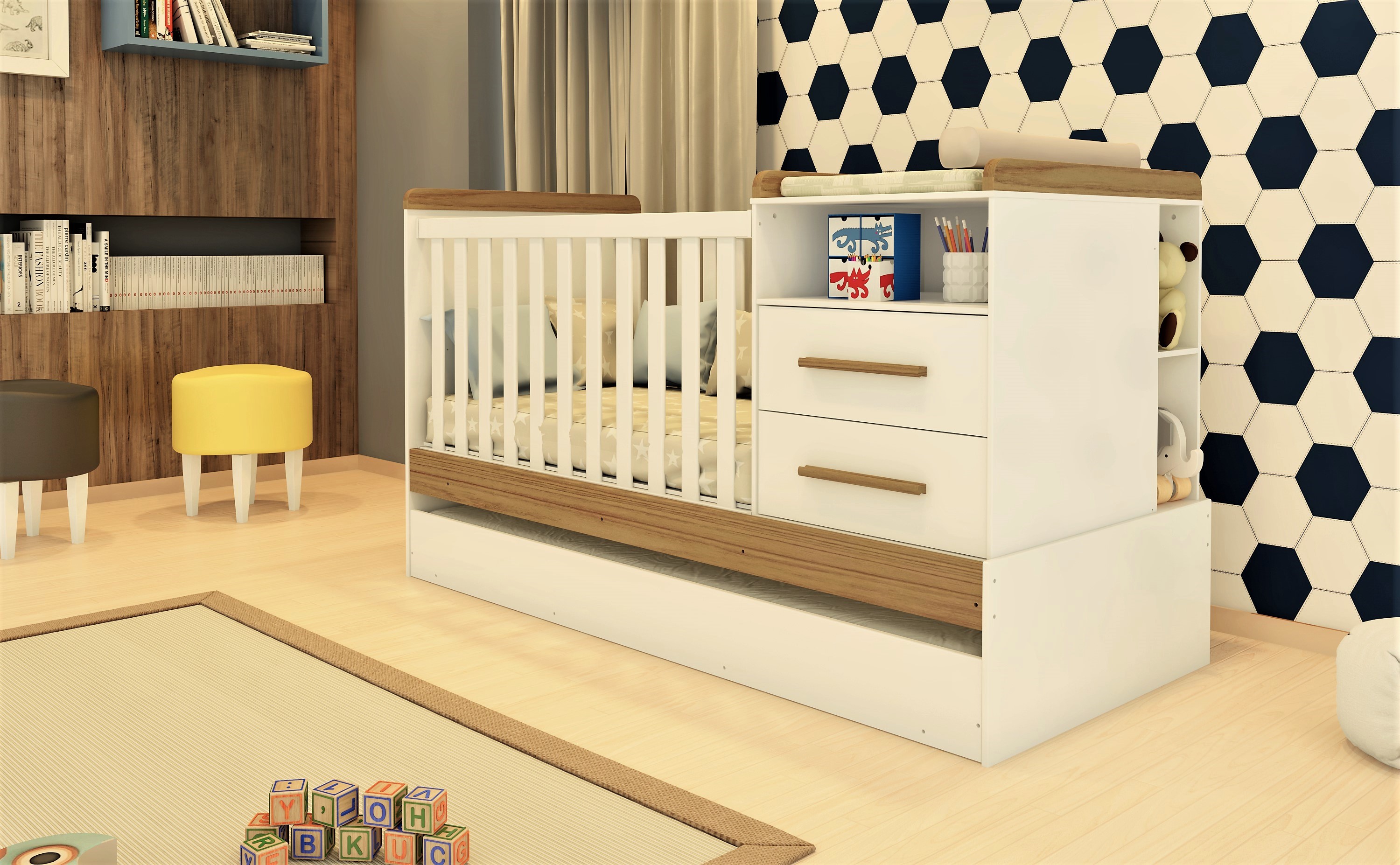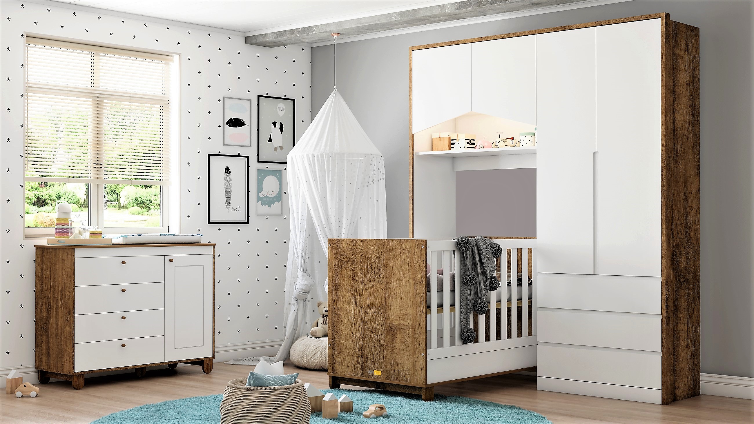 Os 50.000 m² do parque fabril da Peroba Móveis, de Linhares (ES), mostram a dimensão de uma das empresas do ramo infantil. Com foco também na otimização de espaço, os produtos comercializados pela empresa apostam na multifuncionalidade para agradar ao público consumidor. O berço Vini é um exemplo de produto que está na moda da multifunção. Ele pode ser transformado em trocador, cômoda, nicho, cama auxiliar, cama de solteiro e escrivaninha. “Assim, o berço Vini oferece, ao todo, sete funções diferentes durante sua vida útil”, revela o coordenador de desenvolvimento de produtos da empresa, Pablo Henrique Boldrini. Além de estar em conformidade com as normas da ABNT, o berço Vini é 100% MDF. Suas bordas arredondadas e laqueadas trazem segurança ao usuário.