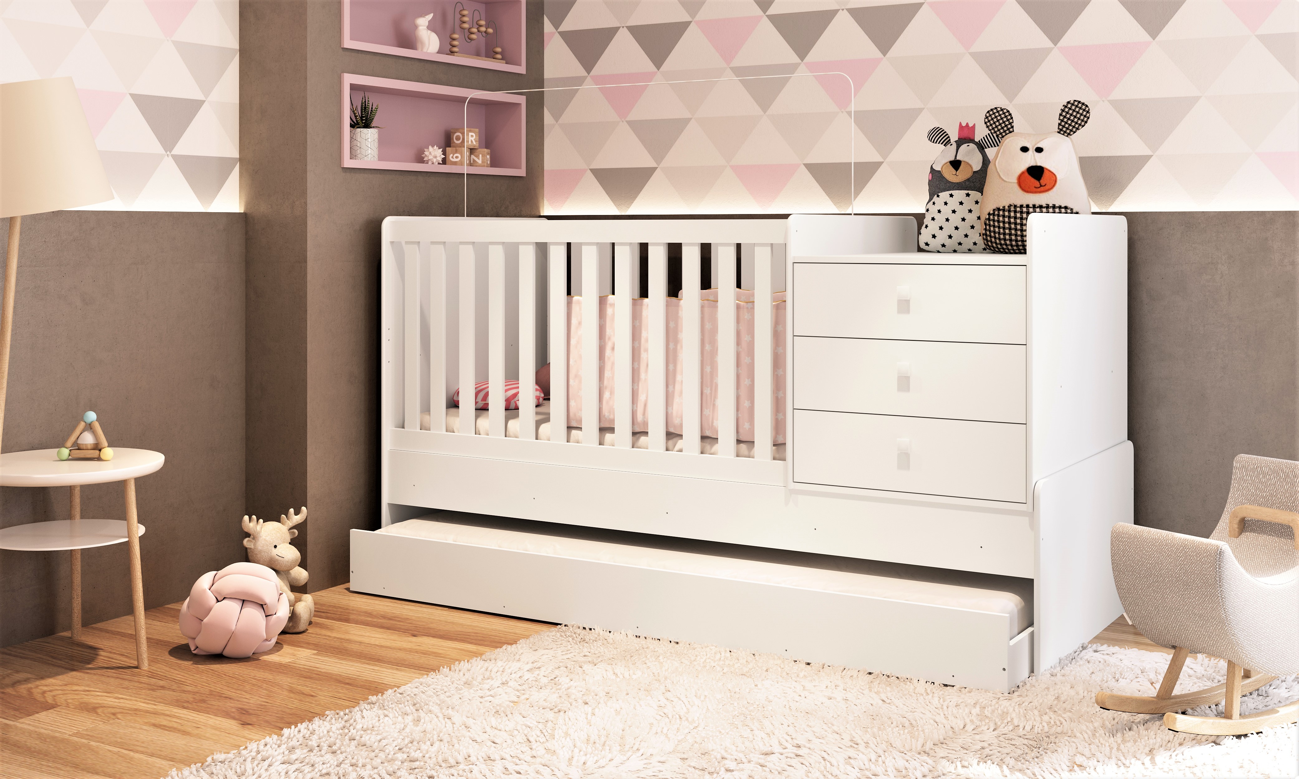 A Cia do Móvel é outra empresa que está por dentro do que acontece no mercado, pois além de produzir também conta com um e-commerce, a Singular Baby, já mencionada anteriormente nesta matéria. Por isso, o diretor comercial, Rodrigo Pinto, acredita no minimalismo para os mobiliários. Além disso, pensar em um objeto infantil que seja compacto, mas que não perca sua versatilidade é de extrema importância para agradar ao consumidor. Um exemplo é a linha bo. Comercializada pela Singular Baby, o berço pode se transformar em miniberço ou minicama.