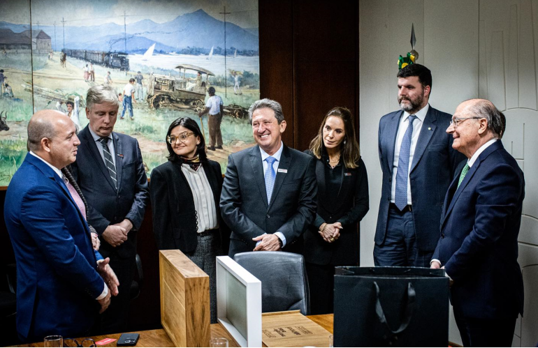 No fim da tarde de terça-feira, 04 de julho, uma comitiva da ABIMÓVEL (Associação Brasileira das Indústrias do Mobiliário) — composta pelo presidente Irineu Munhoz, a diretora-executiva Cândida Cervieri e os vice-presidentes Daniel Lutz, Adeilton Pereira e Esther Cuten Schattan — com apoio do deputado federal Pedro Lupion (PP-PR), esteve reunida com o Presidente do Brasil em exercício, Geraldo Alckmin, Vice-Presidente da República e ministro do Desenvolvimento, Indústria e Comércio, e com a secretária de Comércio Exterior do MDIC, Tatiana Prazeres, para a discussão de propostas fundamentais para a manutenção e desenvolvimento do setor moveleiro e da indústria nacional.