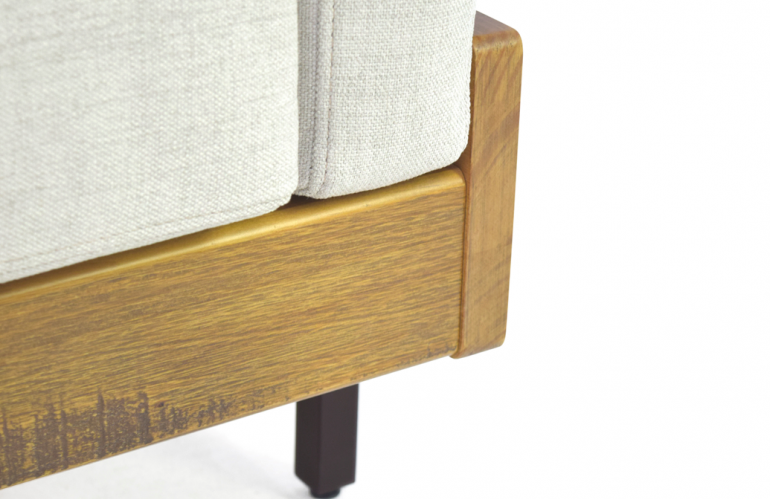 Um dos lançamentos será o Sofá Detroit, que possui estilo industrial e é feito com estrutura de madeira vazada e ferro na base, e almofadas removíveis, dando mais funcionalidade ao móvel.