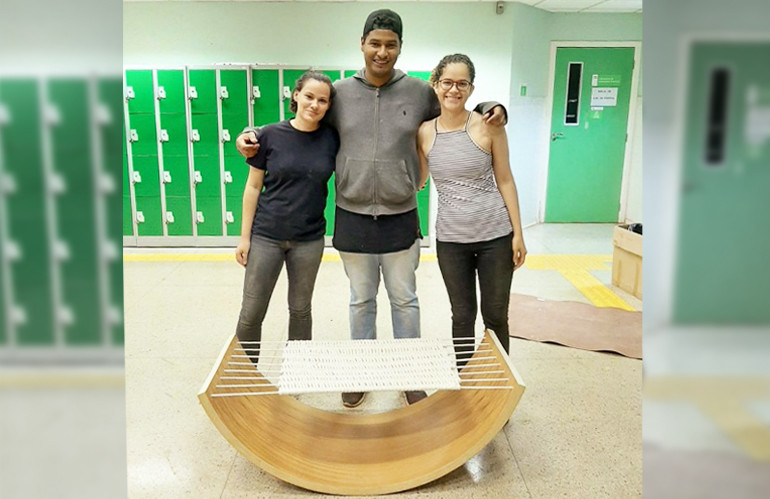 Os jovens são Carla Sanches, Wanderson Ferreira e Laura Catarina Ferraz, estudantes do ensino médio. O trio desenvolveu o projeto de um banco-balanço com movimento lateralizado para uso de uma pessoa como proposta lúdica e contemporânea para o concurso.