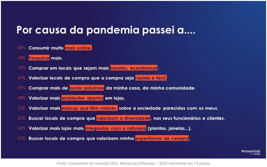 A pesquisa “O Consumidor do Amanhã”, realizada com exclusividade para o Latam Retail Show 2022, trouxe uma série de aprendizados sobre o que afetará o consumo e varejo nos próximos 5 a 10 anos. Mas o que quer o consumidor agora? O estudo nos mostra que o consumidor saiu muito mais exigente da pandemia. Ele teve muito tempo para refletir sobre o seu papel e o das marcas nesse novo contexto. Um dos pontos que mais nos chamaram a atenção é que as pessoas querem tudo cada vez mais rápido, com alta qualidade e, de preferência, barato (ou até mesmo grátis).