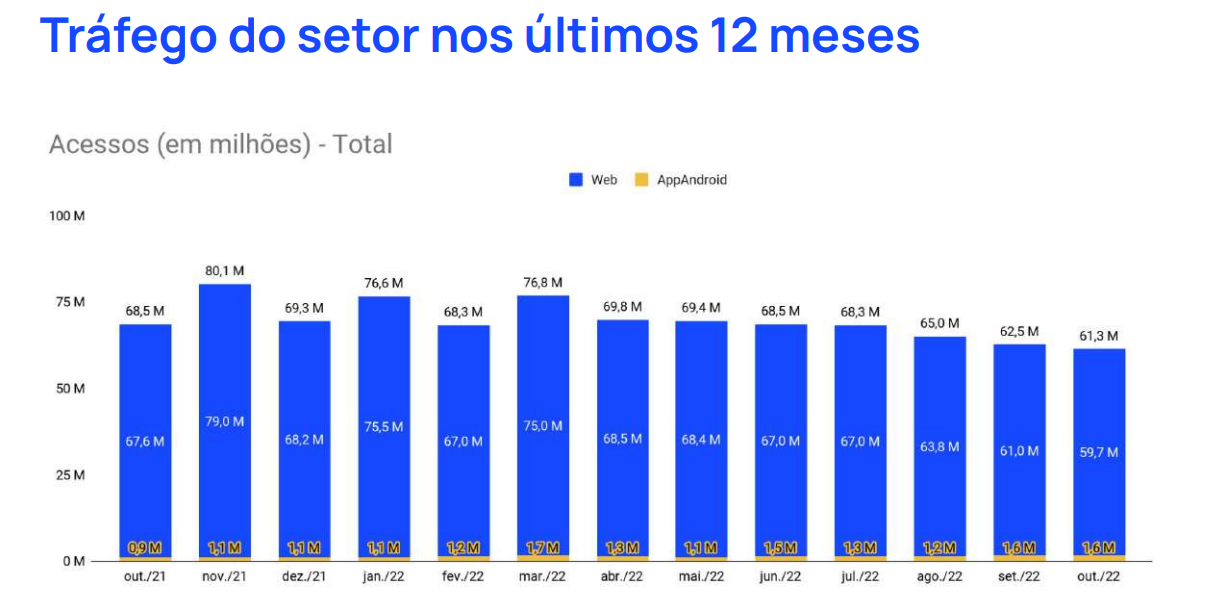 No setor de Casa & Móveis, aplicativos representaram 2,6% do tráfego mensal, totalizando +1,6 milhões de acessos.