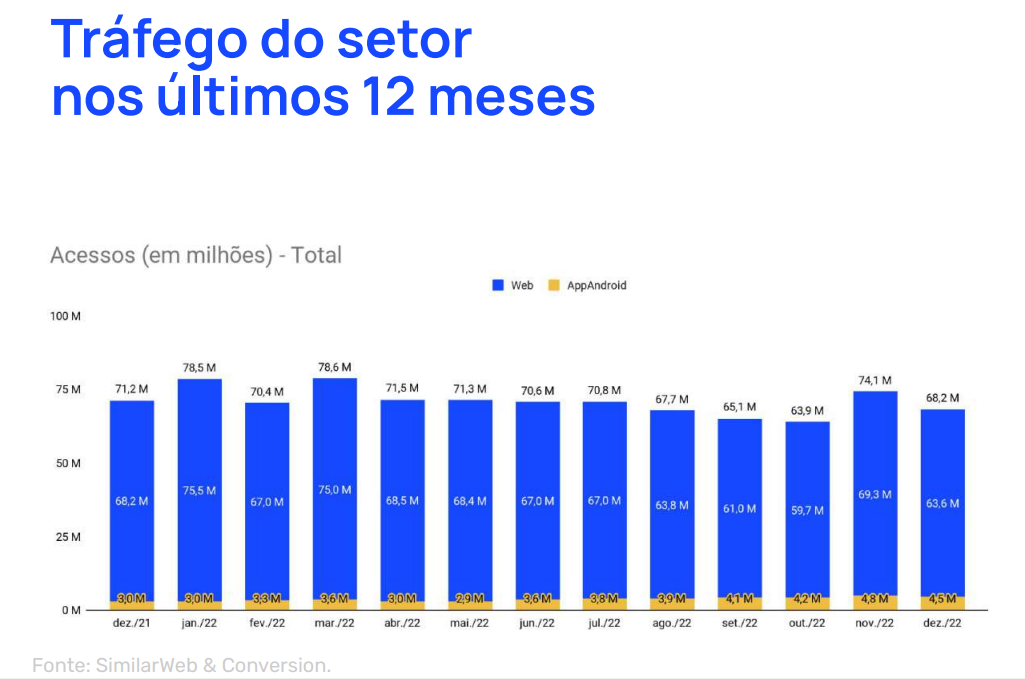Foi o segundo melhor desempenho de 2022, contudo: em novembro, esse número havia sido de 2,63 bilhões. Os dados fazem parte do Relatório Setores E-commerce no Brasil da Conversion do mês de dezembro.