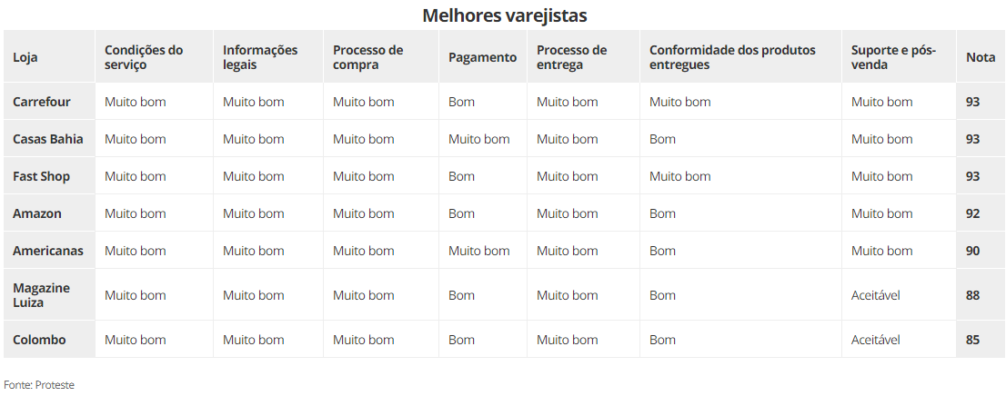 Com o aumento das compras pela internet, considerando principalmente os clientes que não estavam acostumados com o digital, ainda vemos que muitas pessoas ficam receosas em comprar em determinados sites por conta de prazos de entrega, formas de pagamento e política de troca, por exemplo. E esses foram alguns dos critérios avaliados pela Proteste em seu estudo.