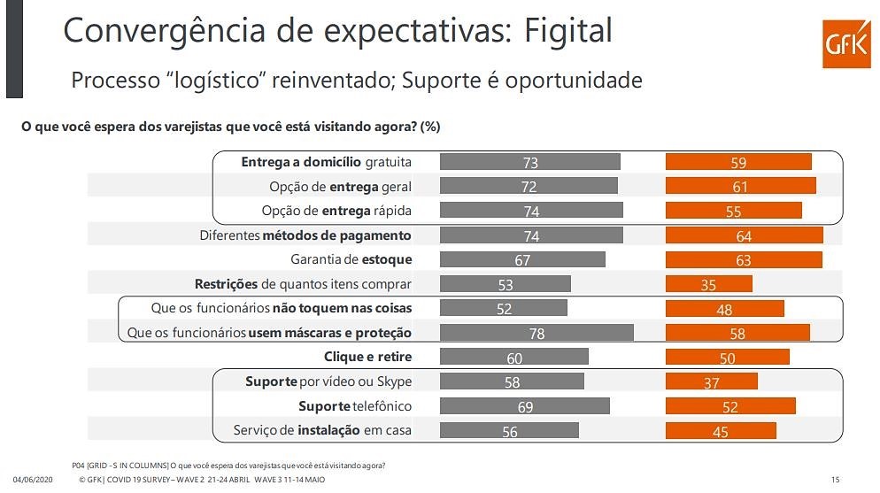 O levantamento da GFK perguntou aos consumidores “o que você espera dos varejistas que você está visitando agora?”, em loja online.