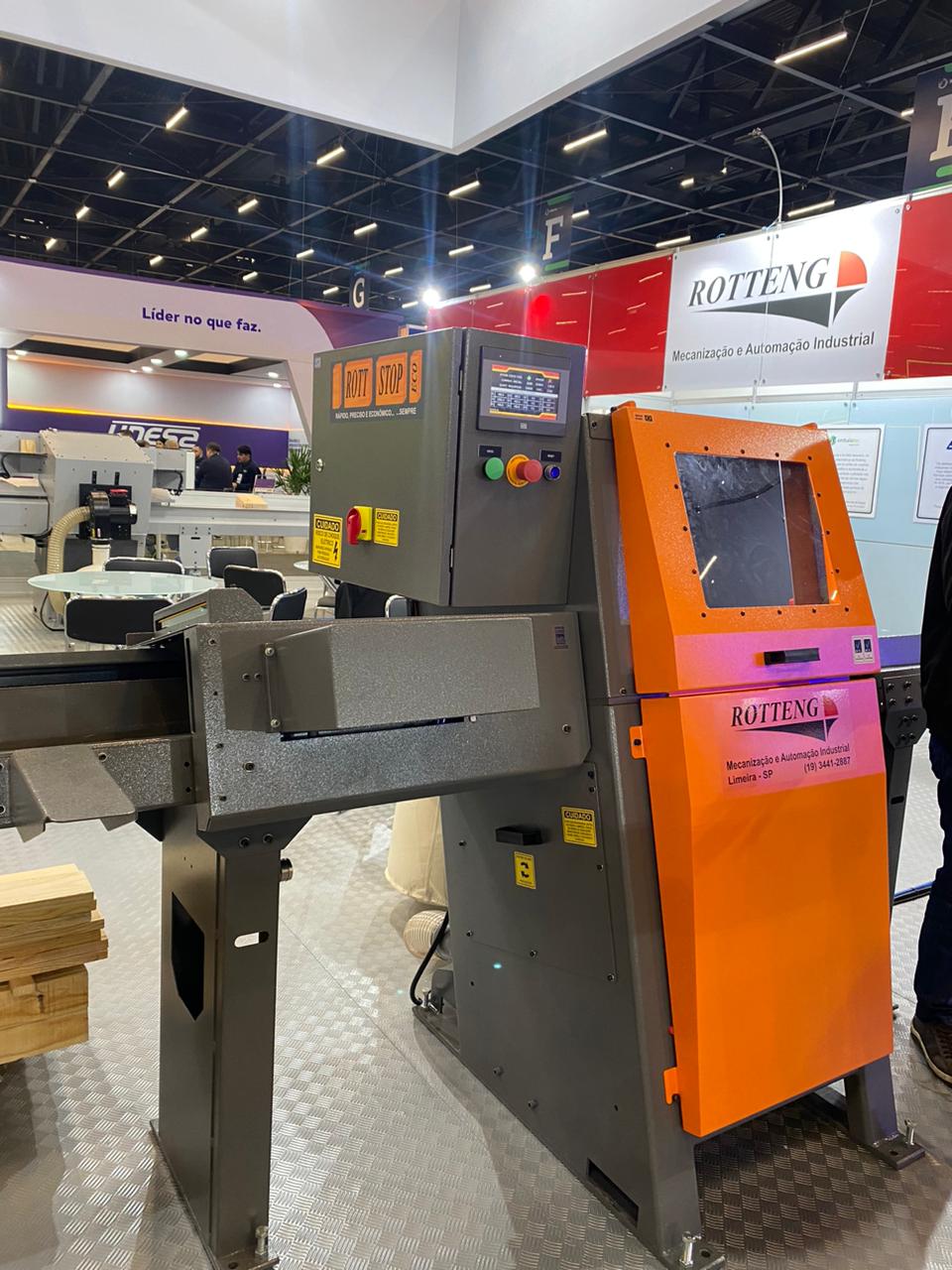 O Rott Stop Eco é um destopador automático com empurrador eletrônico. Esse é um equipamento para corte transversal em tábuas e tocos de madeira. Com ele, é possível determinar as medidas para o corte através de uma programação feita em sua tela. Além disso, devido a sua grande flexibilidade, esse maquinário pode ser programado para fazer até 54 cortes com medidas diferentes na mesma tábua.