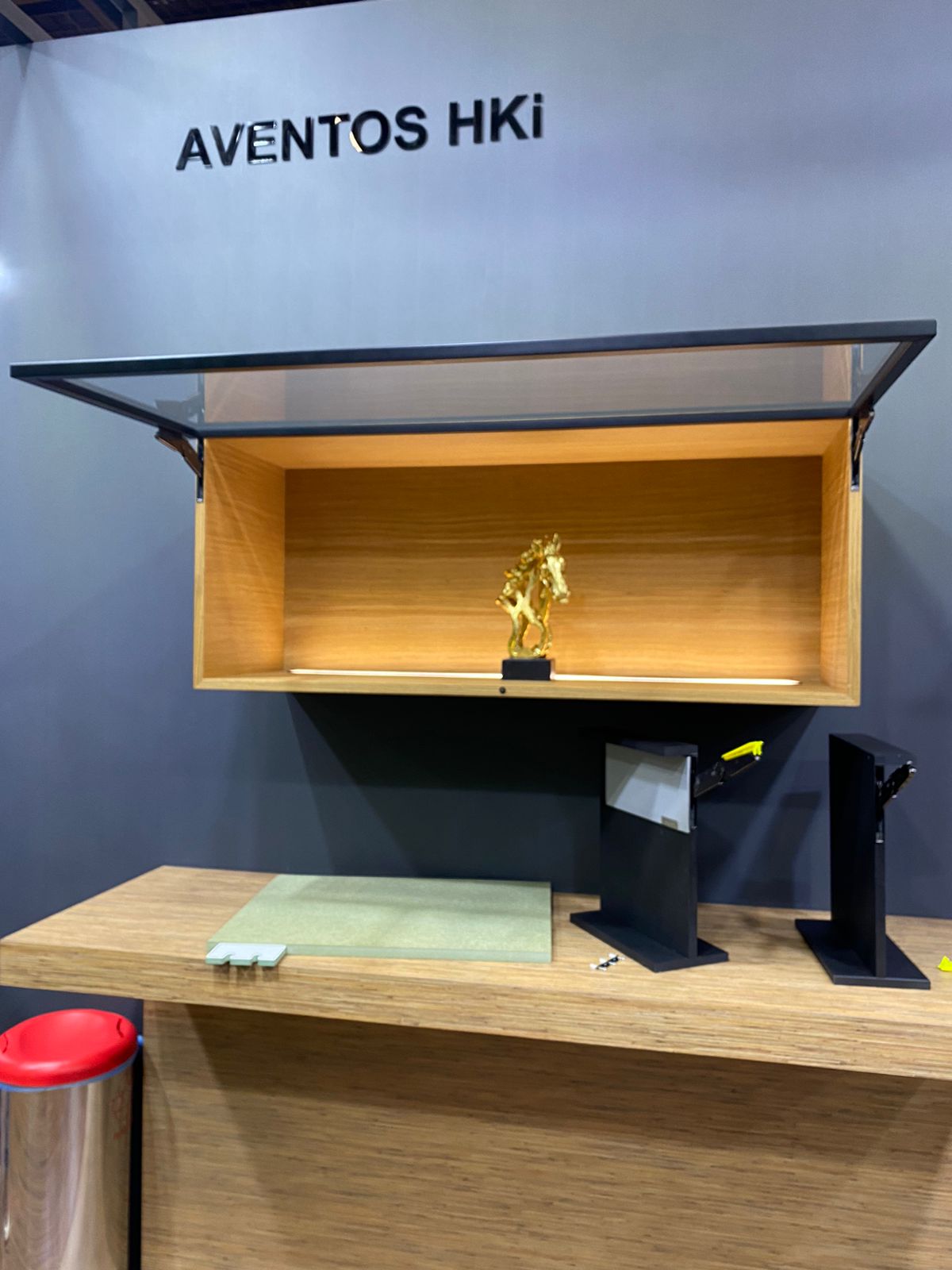 Totalmente integrado ao móvel, o Aventos HKi é invisível mesmo em móveis com frentes de vidro e molduras de alumínio. Ele foi pensado para promover a supervalorização do móvel com uma pitada de apelo emocional, afinal, não é qualquer objeto que é guardado em uma peça confeccionada por ele. A ideia é exibir relíquias, coleções e itens de grande apreço. Além disso, o HKi também inova ao mostrar que consegue agregar design sem perder nos quesitos de resistência e funcionalidade.