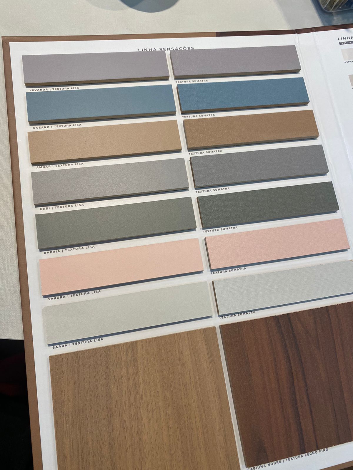 No estande da Fibraplac o destaque foi para a Linha Sensações, com nove novas cores de padrões de MDF, sendo sete unicolores e duas amadeiradas. Essa coleção traz cores modernas, atemporais e versáteis que conversam entre si e conseguem ser facilmente combinadas com outros padrões. Outro diferencial da linha é que ela traz texturas tanto lisas quanto sumatras. De acordo com a equipe de vendas da Fibraplac, as cores que mais têm sido procuradas pelo público são a Serrano e a Saara.