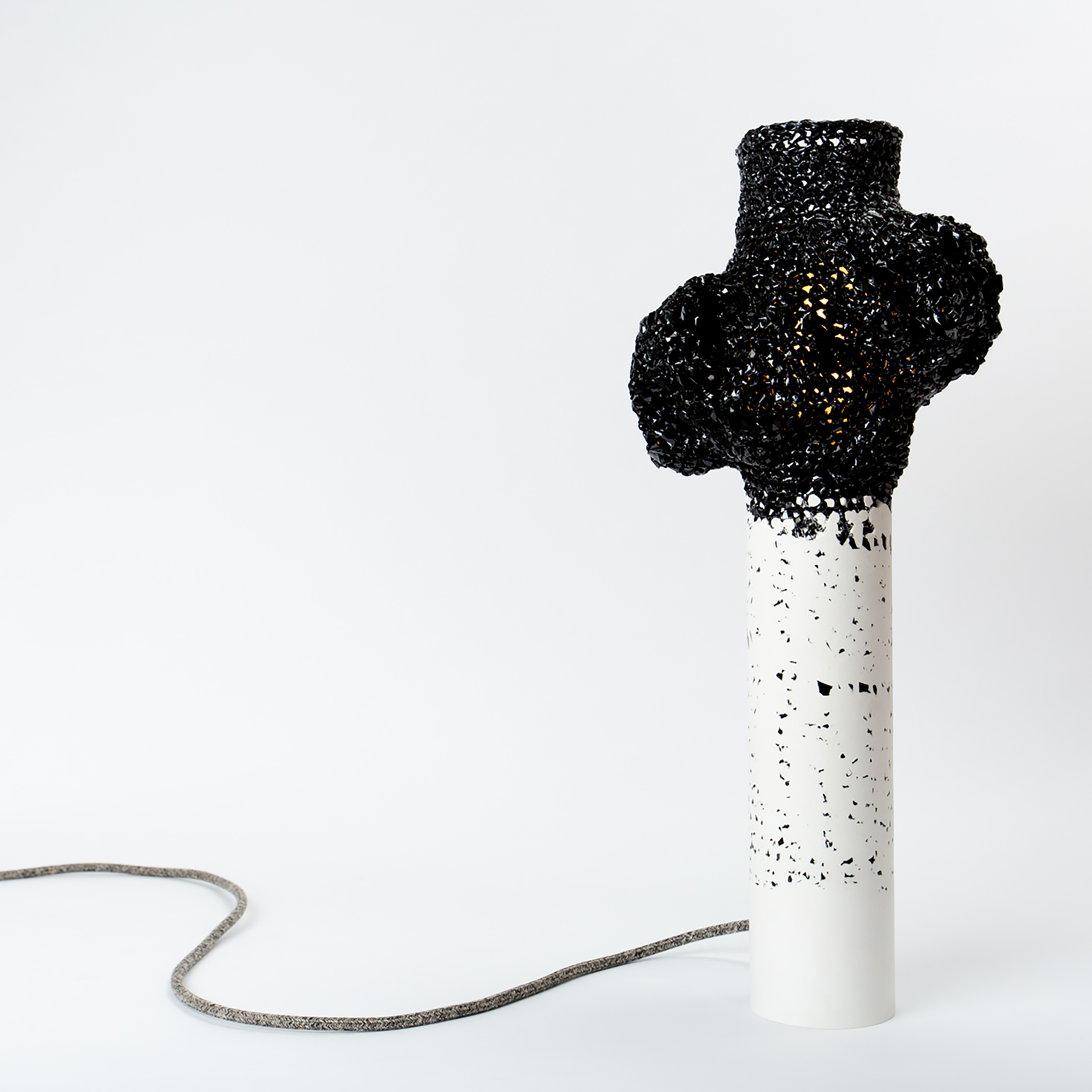 Já o segundo lugar do pódio do Salão Satélite ficou com o Studio Gilles Werbrouck da Bélgica, com o projeto Lâmpadas, que consiste em uma série limitada de lâmpadas que fundem duas técnicas despejando gesso branco em VHS preto, além dos detalhes em fita de crochê. Este projeto aproveita a memória, unindo elementos lúdicos ao artesanato e o resultado é um objeto bonito, funcional e também sustentável em termos de matéria-prima e processo.