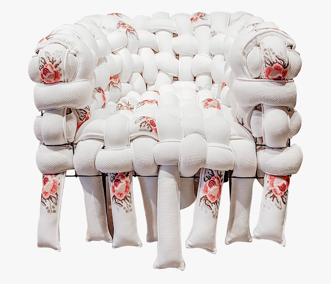 Essa tangência do industrial e artesanal está presente também na conceituação do Ponto Cruz, tradicional técnica brasileira. Se por vezes o mesmo é aplicado na icônica Poltrona Underconstruction (2009) pela artesã Ana Caires². Por outras apresenta-se em uma revisitação feita através da linguagem digital, que dá fruto à cerâmica Artesania³ e Tapete Ponto Cruz⁴.