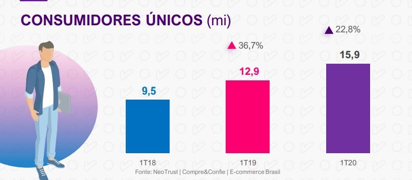 O número de consumidores únicos atual é o maior já registrado para um 1º trimestre do ano. Mesmo significativo, apresenta um percentual de crescimento menor do que o apresentado no último ano, fator que pode ser explicado por alguns motivos: a conquista de uma base significativa ao longo dos últimos anos (deixando cada vez menos espaço para conquistar novos consumidores) e a falta de acesso ou de hábito para o varejo digital.