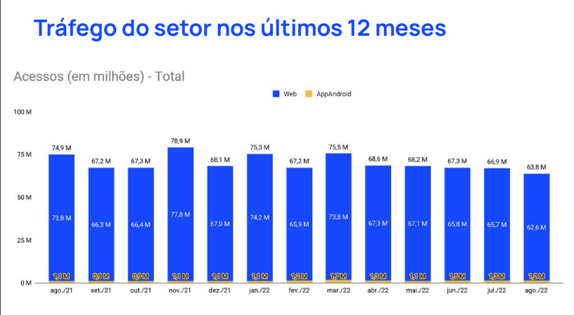 Os dados são do Relatório Setores do E-commerce, que é divulgado mensalmente e mede os acessos a sites e apps das maiores plataformas, apresentando a tendência da indústria e de cada um dos setores. As comparações são feitas com o mês imediatamente anterior.