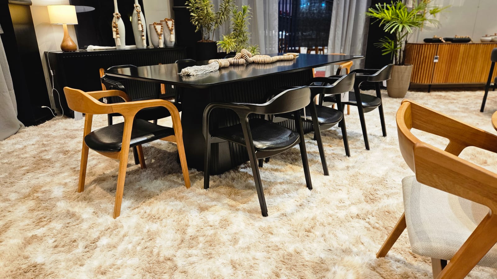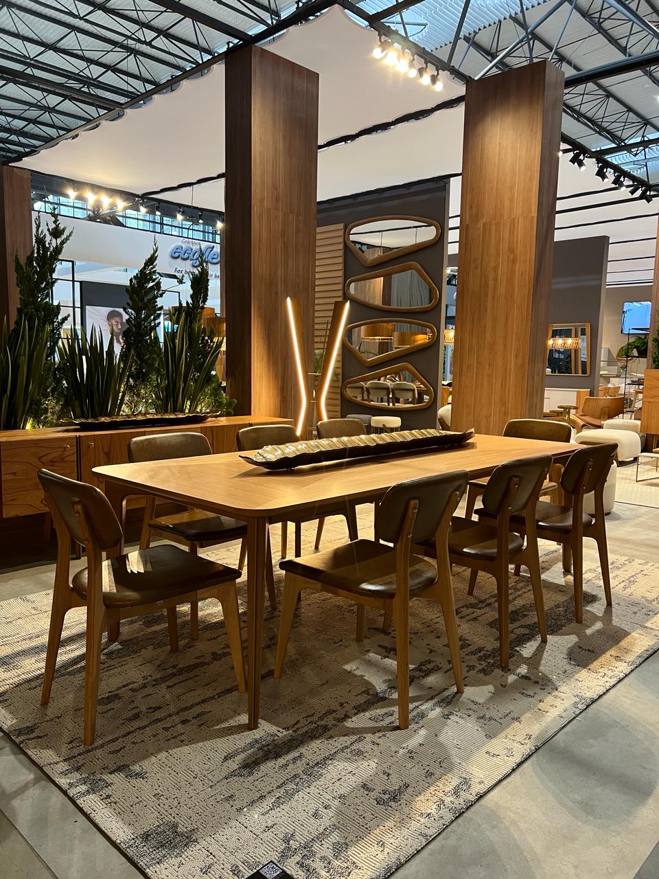 E no estande da Seiva foi uma combinação de peças assinadas por dois designers diferentes que conquistou o público: a mesa Class, de Jhoel Silva, e a cadeira Aston, de Ramon Zancanaro. A marca optou por mostrá-las formando um conjunto que evidenciou a cor preta e os detalhes marcantes das duas peças.