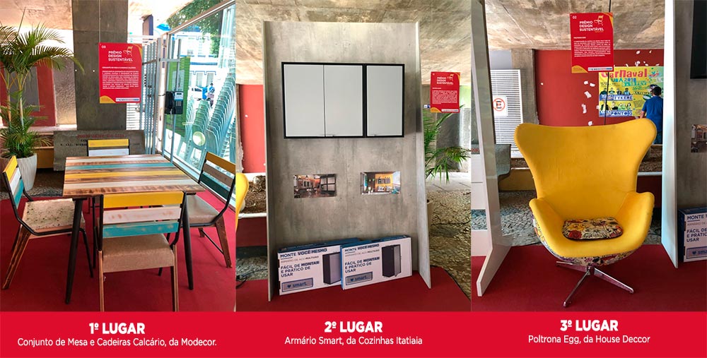 Os móveis vencedores estão expostos no hall de entrada da Femur 2018. As ações sustentáveis da feira contam com a parceria da empresa Simbiose Ambiental. O evento é uma realização do Intersind (Sindicato Intermunicipal das Indústrias do Mobiliário de Ubá) e acontece até 1º de março de 2018, das 14h às 21h, no Pavilhão de Exposições do Horto Florestal, em Ubá (MG).