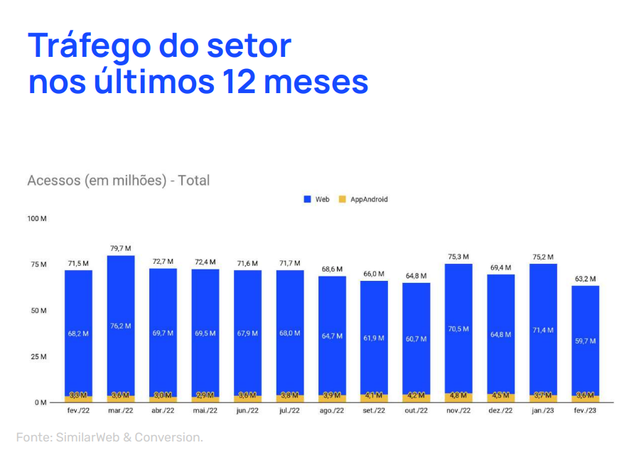 O desempenho negativo foi puxado pelos acessos via dispositivos web, que caíram 17,3% entre janeiro e fevereiro, e pelo carnaval — uma data tipicamente fraca para o varejo digital.