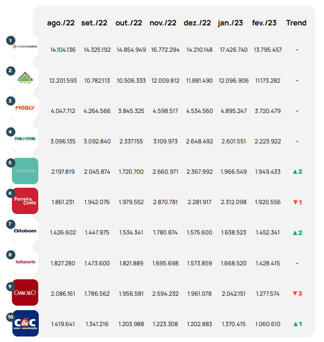 Quem mostrou um desempenho um pouco melhor, se comparado ao mês de janeiro, foi a Westwing que, apesar da retração de 0,9%, conseguiu subir duas posições no ranking e agora ocupa a 5ª colocação no segmento.