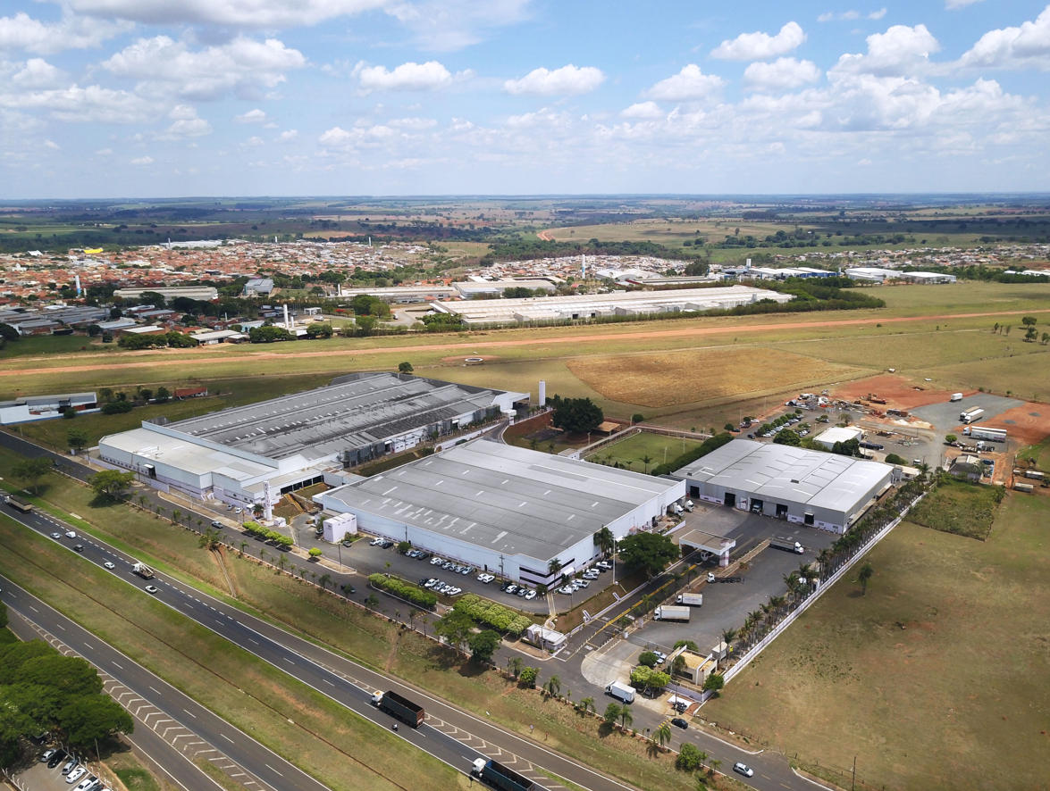 | Vista aérea da fábrica da Gelius em Mirassol, São Paulo |