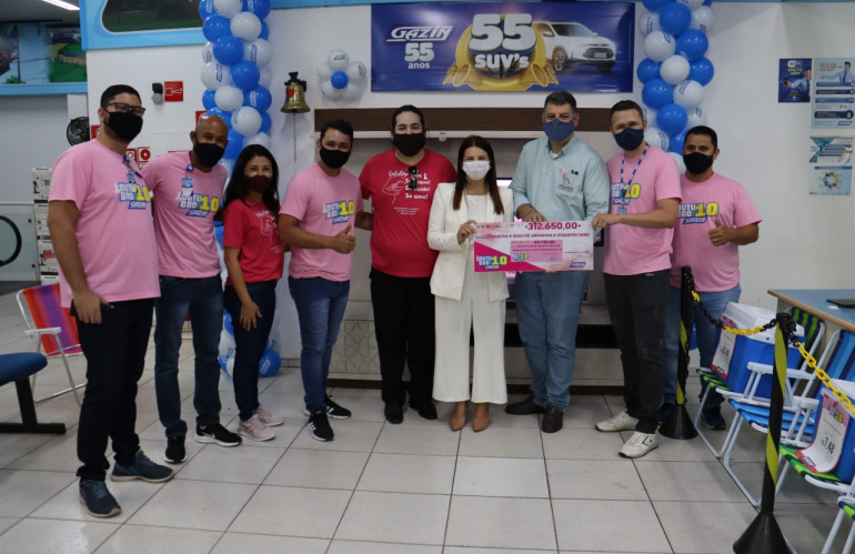 As doações da campanha Gazin: Outubro é 10, realizada pela Gazin nos dias 9 e 10 de outubro e que arrecadou R$ 312.650,00, foram entregues para instituições que cuidam de pacientes com câncer. A campanha, que em compras acima de R$ 100,00 doou R$ 10,00 às instituições, contou com um super Plantão Solidário de Amor ao Próximo e live para animar os clientes. “Estamos felizes de, mais uma vez, poder ajudar muitas pessoas com esses recursos”, comenta o presidente do Grupo Gazin Osmar della Valentina.