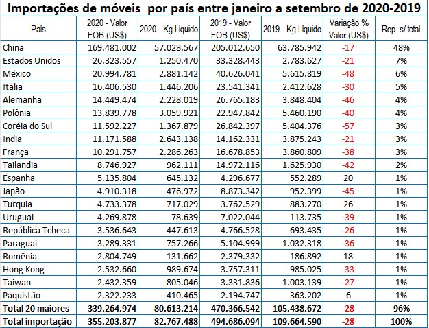 Se o câmbio favorável não alavancou as vendas externas, o dólar alto pelo menos serviu para inibir as importações, o que é bastante favorável ao móvel brasileiro. Significa menos concorrência, principalmente com móveis chineses que representam 48% do total importado.