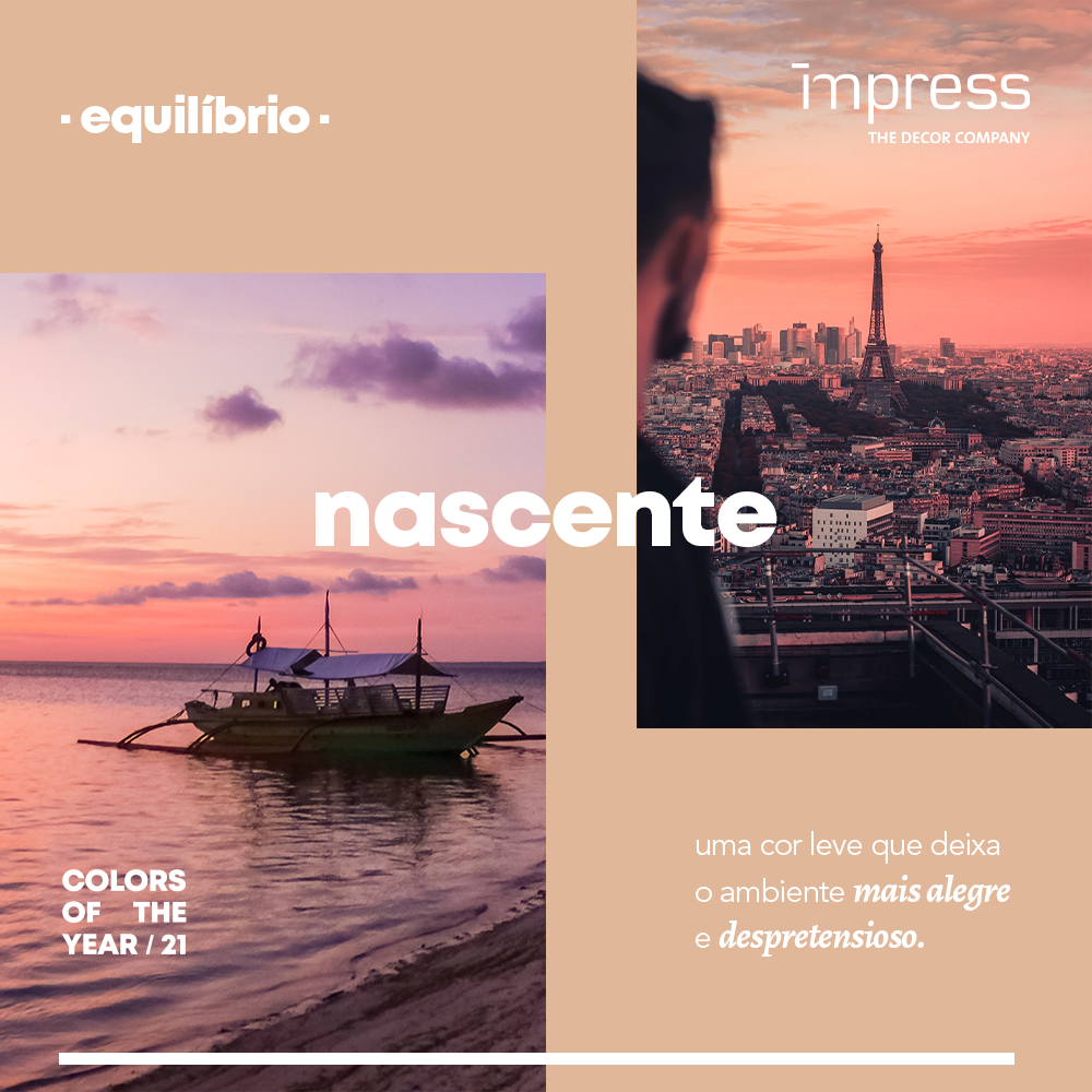 Num período de tantas mudanças, encontrar o equilíbrio entre aquilo que desejamos e o que nos é essencial tornou-se uma missão na busca por nos adaptar aos novos desafios e estilos de vida que despontam à nossa frente. E é justamente essa harmonia entre opostos complementares, que pautou a escolha das duas cores que simbolizam a visão da Impress Decor Brasil para 2021. Ano de redescobertas, força e leveza, nascer e crescer!