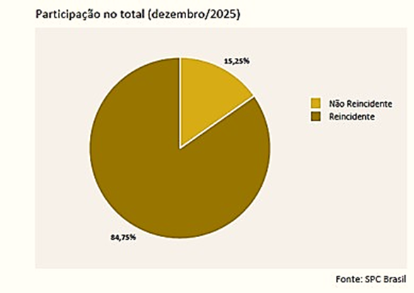 A inadimplência segue como um dos principais desafios do consumo no Brasil. Dados do Indicador de Reincidência de Pessoas Físicas, divulgado pela CNDL em parceria com o SPC Brasil, mostram que 84,75% dos consumidores negativados em dezembro de 2025 já haviam passado pelo cadastro de inadimplentes nos 12 meses anteriores.