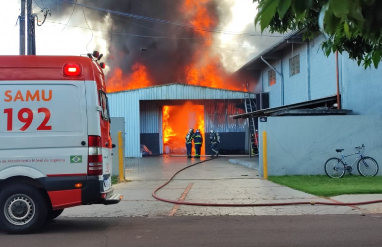 Incêndio de grandes proporções destrói fábrica de colchões no PR