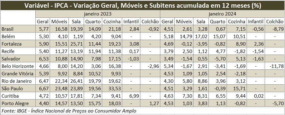 A primeira pesquisa do Índice de Preços ao Consumidor Amplo – IPCA, mostra um quadro preocupante para as indústrias de móveis e colchões.