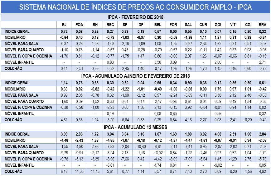 IPCA de móveis fica em -0,34% em fevereiro