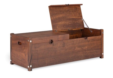 Sua forma prismática em madeira contrasta com os pés marcantes, fixados por parafusos ocultos. O recurso dos pés que atravessam o assento reforça a linguagem do designer, presente em diversas obras da época.