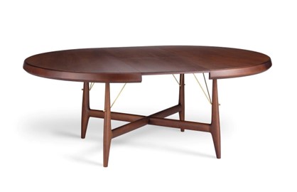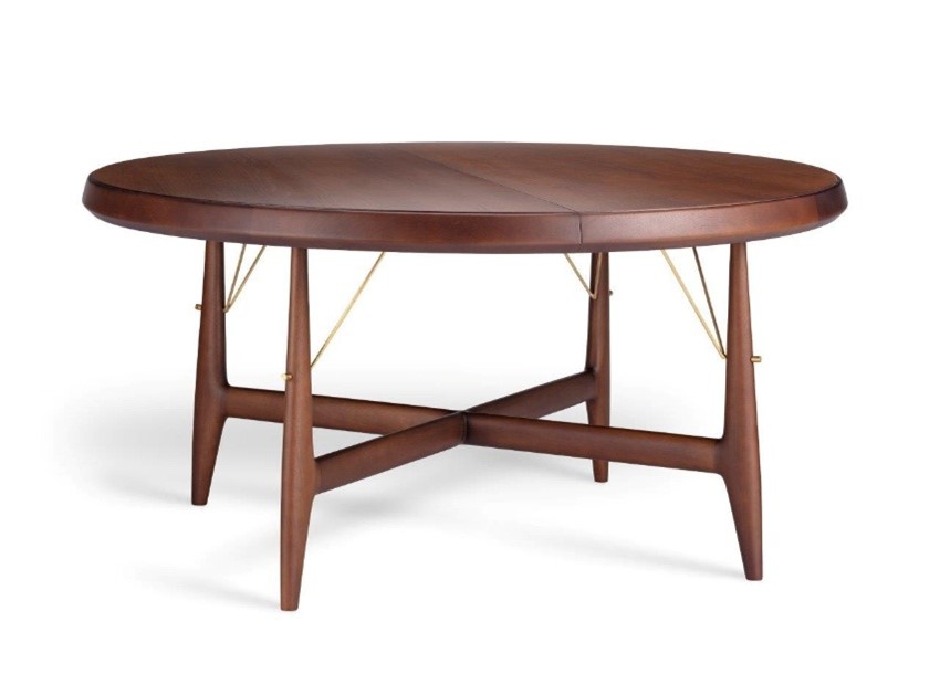 A mesa Stella é uma peça extensível que transita entre o formato circular e oval.