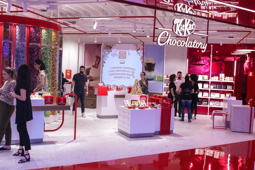 A KitKat Chocolatory, primeira flagship da marca na América Latina, localizada no shopping Morumbi, em São Paulo, oferece um espaço concebido para proporcionar uma experiência única aos consumidores, repleta de inovações e personalizações.