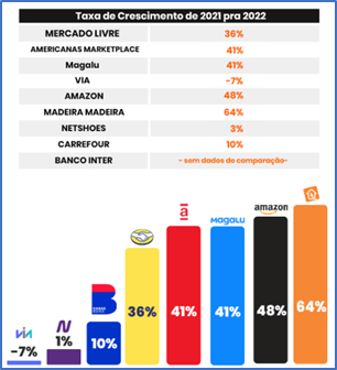 Inclusive, o MadeiraMadeira teve aumento de 64% no GMV das vendas realizadas através do hub de integração. A tabela completa de crescimento pode ser vista a seguir: