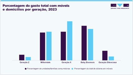 - Madeira: 39,15% do mercado, preferência por origem sustentável. Exemplo: Bassett Furniture – móveis de madeira personalizáveis e certificados.