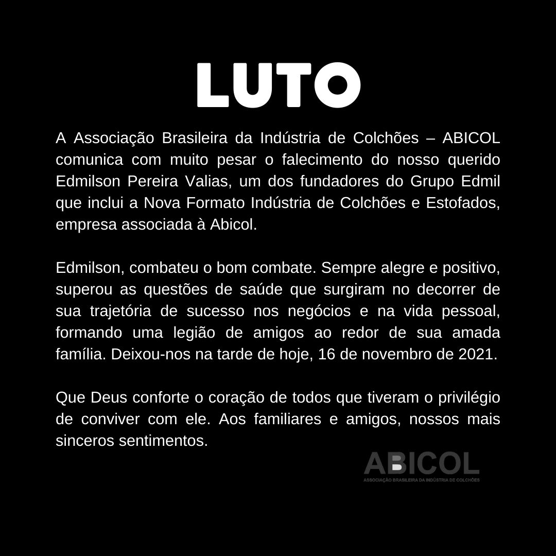 Atualização às 11:04: Abaixo comunidado do grupo Edmil e a nota de pesar da Abicol, entidade a qual a Edmil é associada.