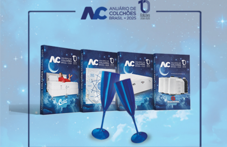 E, na Movelpar Home Show, você terá a oportunidade de conhecer de perto esse material repleto de informações. A versão impressa do Anuário de Colchões Brasil 2025, com certeza, é a melhor forma de consulta para fabricantes, fornecedores e lojistas sobre as novidades e tendências do mercado colchoeiro, além de ser feito com material de qualidade e capa dura. Por falar em capa, uma das novidades dessa edição que comemora os 10 anos do Anuário, é a presença de 4 empresas nas capas, ou seja, existem quatro capas diferentes, mas o conteúdo é o mesmo.