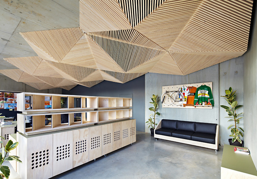 Assemble, um estúdio em Northcote, Austrália, projetou e fabricou suas próprias mobílias móveis a acomodar a flexibilidade necessária para seu processo criativo e colaborativo. Como uma empresa que não só trabalhava em projetos de design, mas também organizava eventos e workshops, era imperativo tornar os móveis facilmente manobráveis, objetivo que eles alcançaram colocando todos os móveis feitos sob medida em rodízios.