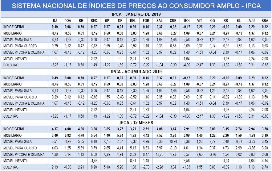 Veja abaixo quadro completo do IPCA de janeiro no setor moveleiro: