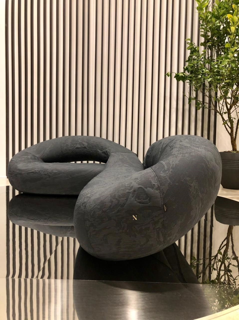 O sofá se sobressai pelo design imponente e revestimento exclusivo, em uma proposta que une estética e sustentabilidade. O tecido Water, desenhado pelo estúdio holandês de inovação têxtil BYBORRE combina fio de lã de altíssima qualidade e PES reciclado. Ambassador também apresenta outra peça da coleção 2021: o sofá Buddie, de Mauro Lipparini, além de peças icônicas da grife italiana, como os sofá Skyline, de Marcel Wanders, e Campus e Cava, também com assinatura de Mauro Lipparini.