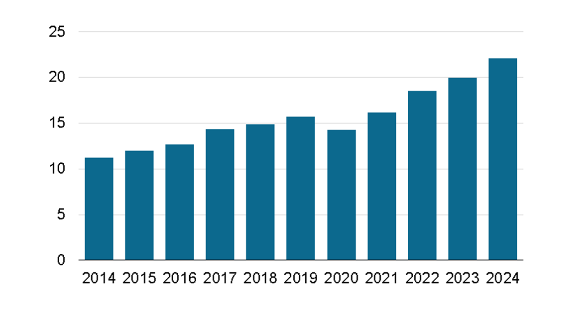 As exportações cresceram em média 8% ao ano entre 2014 e 2024, e já representam 9% da produção nacional. A tendência é de internacionalização cada vez maior.