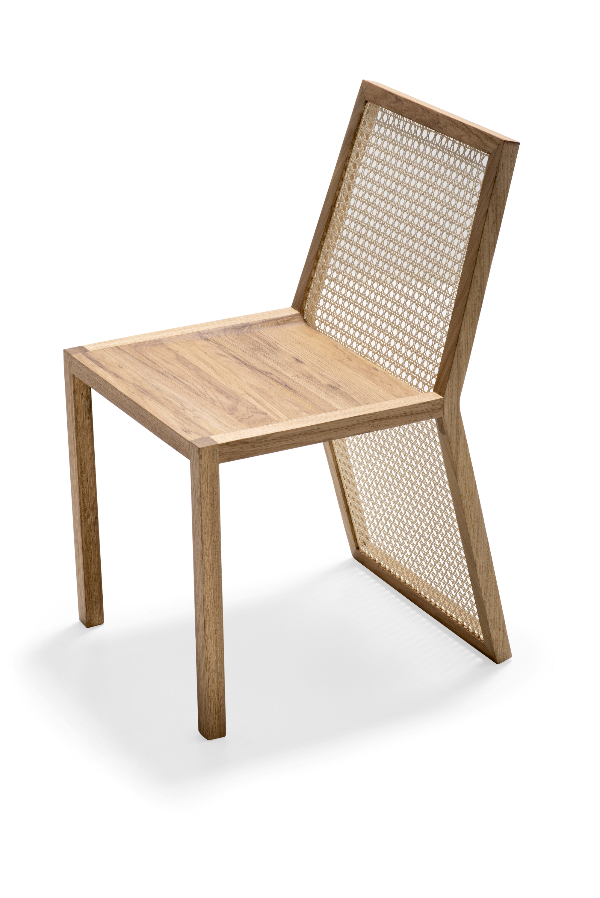 Cadeira Canvas - A cadeira Canvas tem como destaque um painel contínuo de palhinha natural, que vai do encosto até a base, formando um aspecto gráfico inusitado. O designer explora o recurso tradicional, o trançado, de uma maneira fluida e contemporânea.