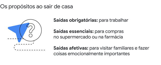 Já nas saídas essenciais, parte das compras por impulso foram substituídas pelas compras online em apps e e-commerces. Embora as compras online satisfaçam a conveniência, elas não satisfazem a necessidade emocional da experiência de compra in-loco.
