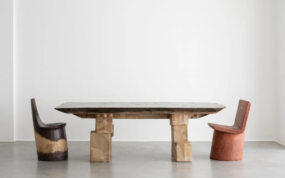 No rico bairro de Mayfair, em Londres, a Gallery Fumi – um espaço de design contemporâneo – apresenta uma nova coleção de móveis. Isso não seria surpresa se não fosse o material incongruente com que essas cadeiras e mesas são feitas: papelão.