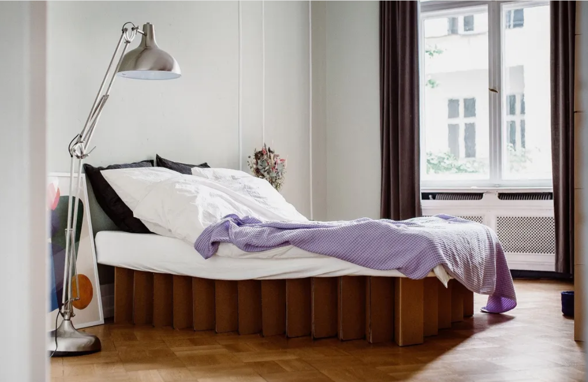 Passando do provocativo ao prático, a marca Room in a Box – fundada em 2013 – oferece móveis de papelão simples e modulares para compra, considerados acessíveis e bons para o planeta. Utilizando papelão ondulado de alta qualidade, a marca alemã promete que suas peças – de estrados de cama a cadeiras e mesas – podem durar até 10 anos.
